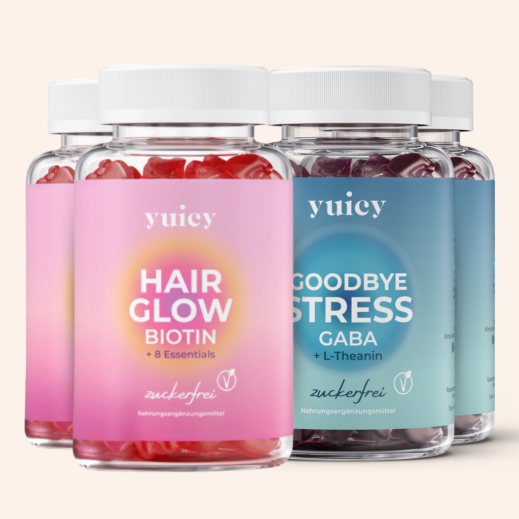 Nach der Geburt meiner Tochter habe ich büschelweise Haare verloren – das war total belastend. Die yuicy Biotin Gummies haben mir wirklich geholfen: Nach ein paar Wochen wurde mein Haar wieder dichter & glänzender. Ich fühl mich endlich wieder wohl mit meinen Haaren. Danke yuicy! 🥰
